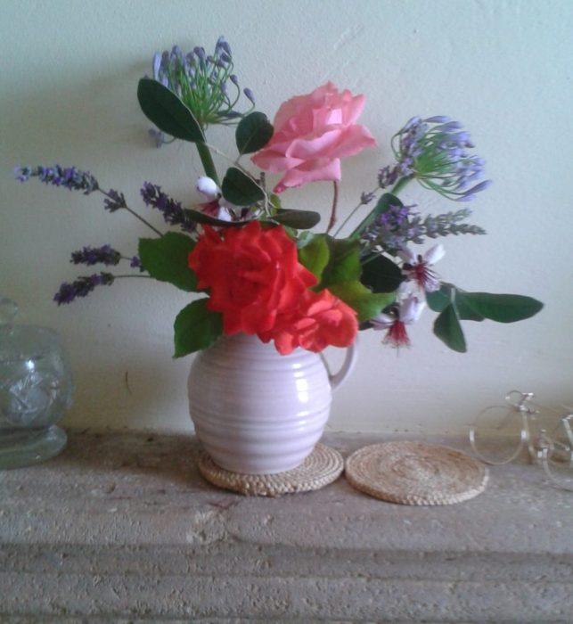 But here are some flowers from my garden. I recognise the roses and the lavender but have no idea what the others are.